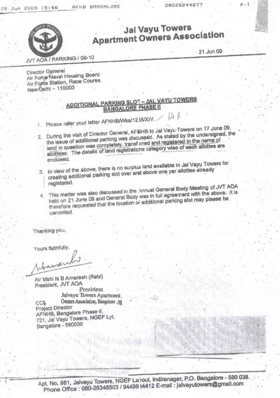 LETTER DATED 10 JUL 09