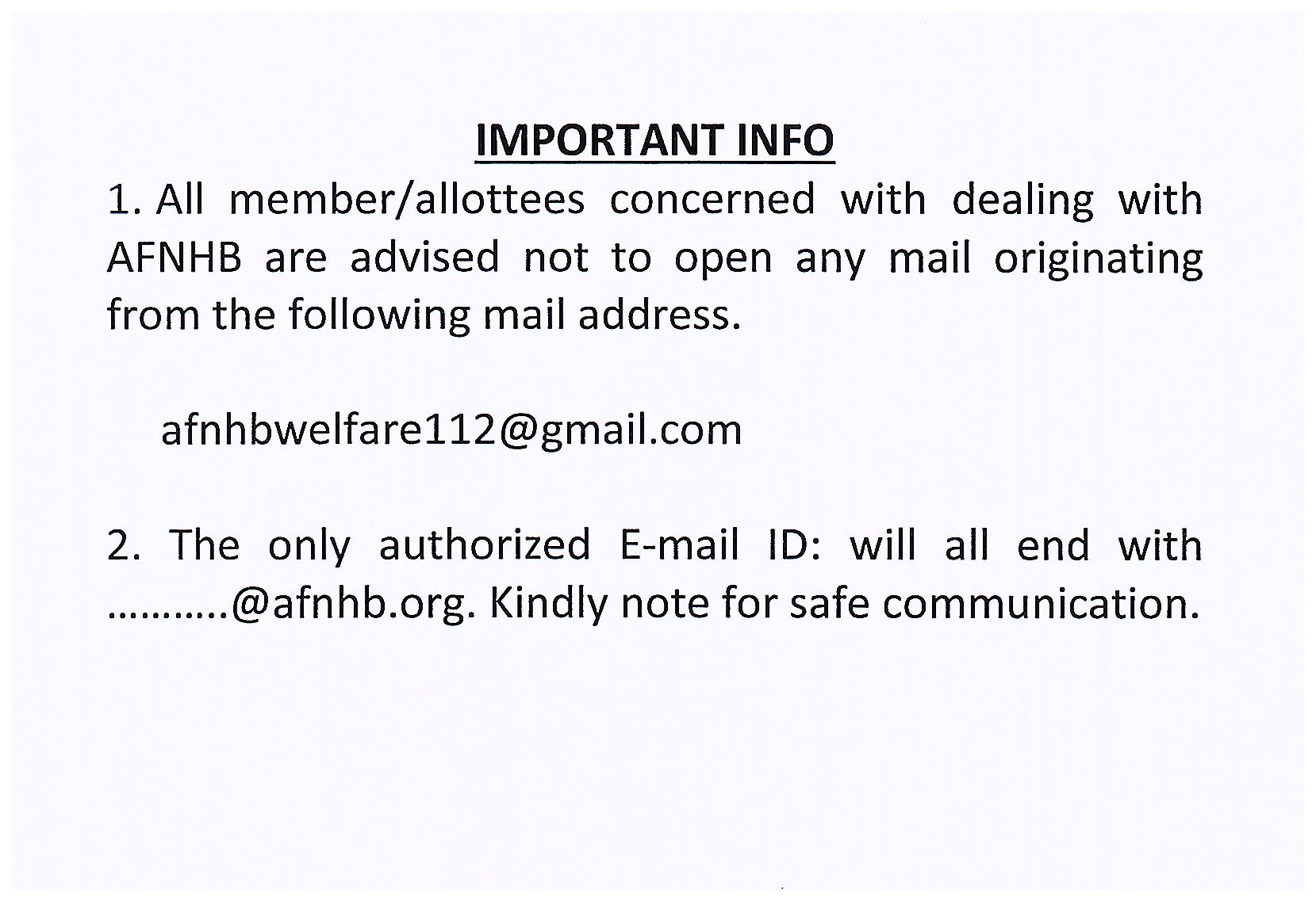 Mandatory Submission of Indemnity Bond for AFNHB Meerut and Jaipur Ph-II Projects as on 19 May 22.[View Details...]