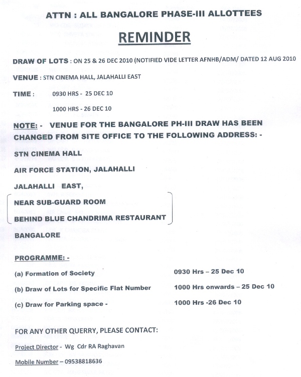 Bangalore Ph-III Draw