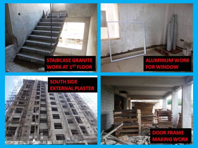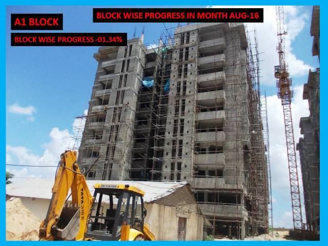 BLOCK A�1 : Structure and brickwork is completed. Internal plaster work is completed upto 3rd floor. Electrical works is in progress upto 50% complete in Block A-1. Block progress is 62.43%.