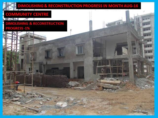 COMMUNITY CENTER : External plaster is 95% completed. Painting, plumbing and flooring is in progress. 87% progress is achieved till date.