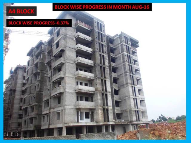 BLOCK A�4 : Structure up to 7th floor and brickwork up to 1st floor completed. 8th floor column shuttering and reinforcement is in progress. Block progress is 48%.