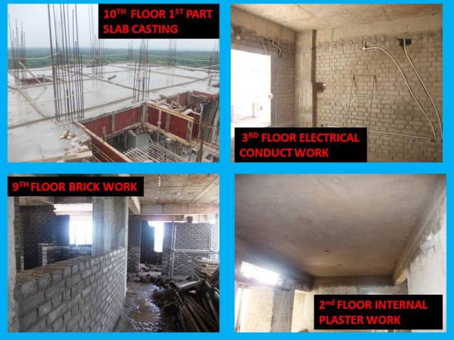BLOCK A�2 : Structure work and brickwork completed. Internal plaster completed up to 8th floor. Block progress is 65.03%.