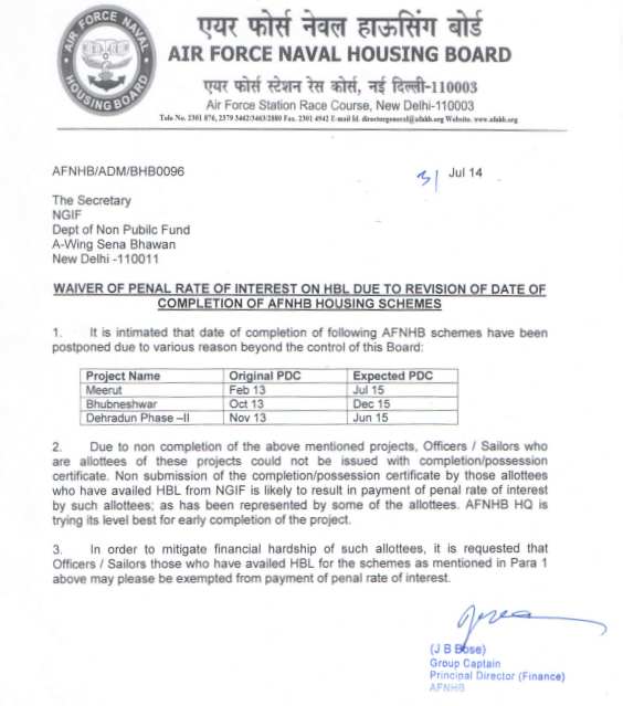 Waiver of penal rate of interest on HBL due to revision of date of completion of AFNHB Housing Schemes : Letter dated 31 Jul 14 ... Read more...