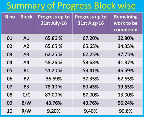 In the past few weeks, the progress on the site has suffered due to inadequate resources and inadequate man power deployed by contractor. The contractor has been citing financial crisis. Consequently the Board has issued the Show Cause notice to the contractor and warned to cancel the contract and carry out the work by third agency at his risk and cost. However, recently the civil contractor has approached the Board seeking mobilization advance against Bank Guarantees in order to infuse funds in the project and achieve the desired progress. The Board has facilitated this and we expect the work to pick up and progress satisfactorily. Please be assured that the board will not spare any efforts at closely monitoring the work and ensuring that work progress at brisk pace to make up for lost time.