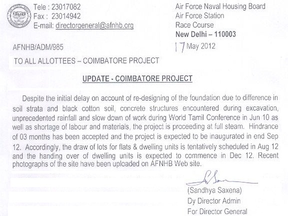 Kind Attention:Coimbatore Allottees(Update on 15 May 13). Read more ...