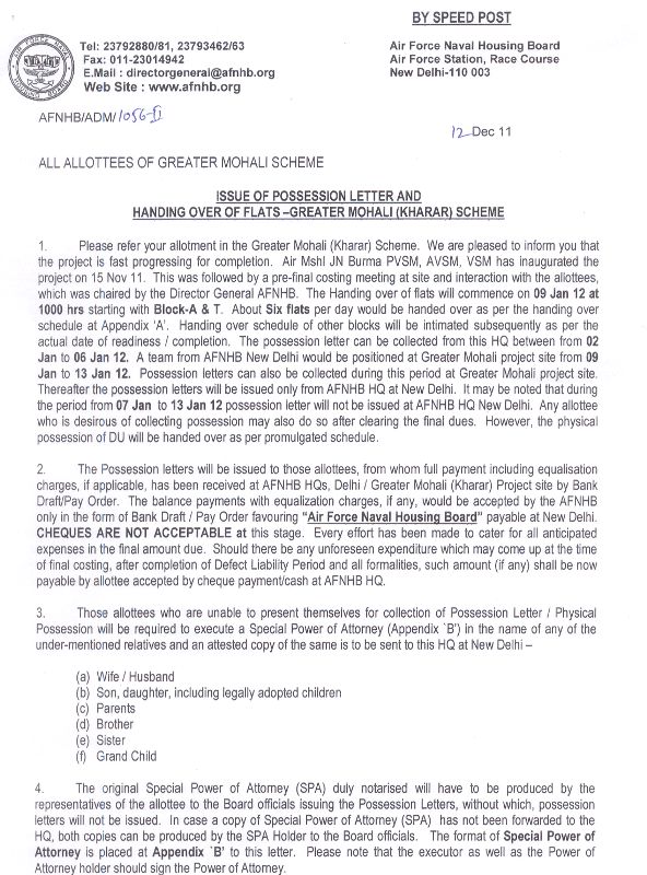 Handing over Schedule for Block - A From 09 Jan 12 Block - T From 09 Jan 12 Block - B From 09 Feb 12 Block - R From 09 Feb 12 and Block - I and U From Mar 12 Block - H and W From Apr 12 Schedule of handing over of other Blocks will be announced later. |