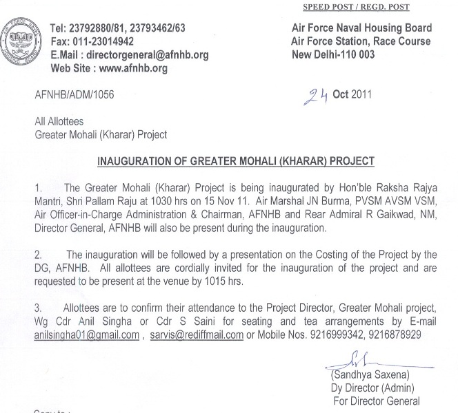 Inauguration of Greater Mohali (Kharar) Project : 24 Oct 11