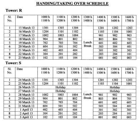 Greater Mohali (Kharar) : Handing/Taking over schedule for I, H, C, R and S Block