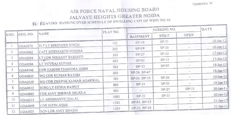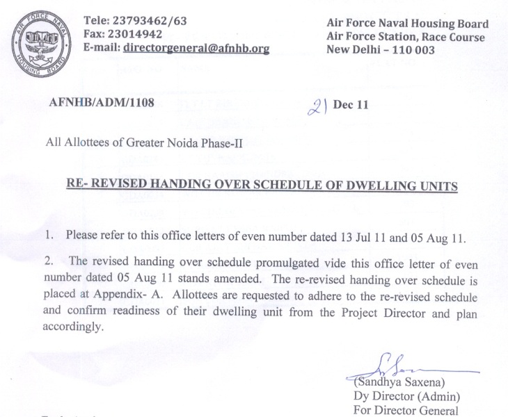 Greater Noida Ph-II Re-revised Handing Over schedule of Dwelling Units.