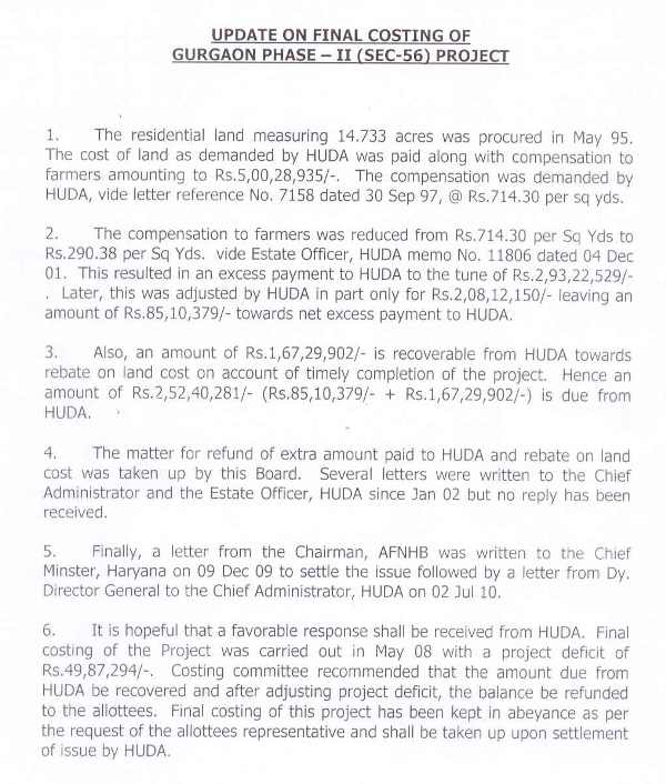 Update on Final Costing of Gurgaon Ph-II (Sec-56) Project
