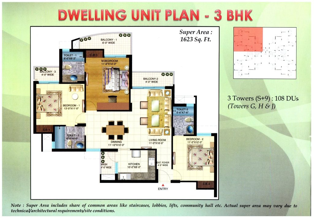 3 BHK and 3 TOILET |