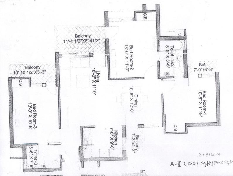 DRAWING/DINING, THREE BEDROOMS, THREE TOILETS, BALCONIES & KITCHEN |