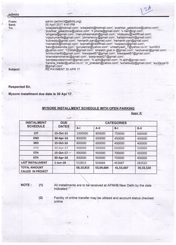 Note: Stilt parking will cost an additional amount of Rs.3.46 lacs. Apart from it the sub heads mentioned at Para 5 of allotment letter would be additional to the tentative cost mentioned above. |