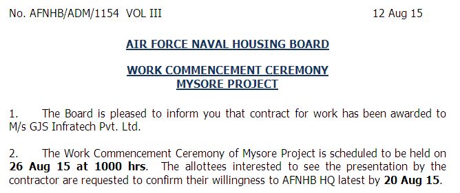Contract for Architectural services with M/s GJS Infratech Pvt Ltd has been terminated with w.e.f 16 Jan 23 due to poor performance.