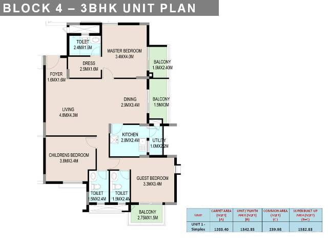 Living/Dining, 3 Bedrooms, 3 Toilets, Kitchen and Balconies. |