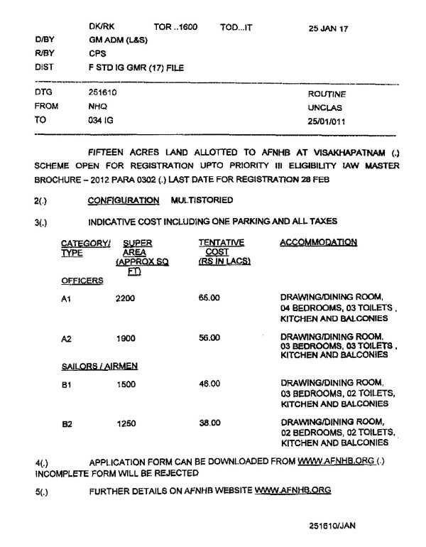 3. The request of AFNHB for allotment of Govt. land at Visakhapatnam is likely to be considered during the Andhra Pradesh State Cabinet Meeting. Further update will be intimated after the meeting.